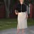 Diesmal aus leichtem Wollstrick, wie bei den ersten Modellen, und mit ½ Ballonärmel und Bootsausschnitt für ein sommerliches Gefühl. Und ja, es ist das gleiche Zick-Zack-Muster wie bei den Röcken, so dass sie wunderbar zusammenpassen! Wie zuvor gibt es auch hier einen Gürtel mit einer schönen, vom Art déco inspirierten Schließe. Obwohl das Design von den 1930er Jahren und der Art-Déco-Ära inspiriert ist, passt die Silhouette dieses Oberteils auch zu edwardianischen oder modernen Outfits.