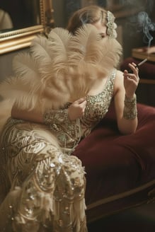 Ein markantes Merkmal der Mode der 1920er Jahre war die Abkehr von den strengen Silhouetten der vorherigen Jahrzehnte. Die „Flapper“-Bewegung symbolisierte diesen Wandel. Frauen trugen nun kürzere Kleider, oft knielang, die eine gerade, schlanke Silhouette betonten. Die Kleider waren häufig aus leichten, fliessenden Stoffen wie Chiffon oder Seide gefertigt und mit Pailletten, Fransen und anderen Verzierungen geschmückt, die für Bewegung sorgten.