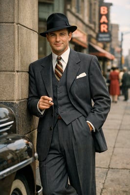 taillierten Blazern. Männermode folgte ebenfalls einem klaren Stil, mit Anzügen, die schmal geschnitten waren, und einer Vorliebe für Krawatten und Hemden in hellen Farben.